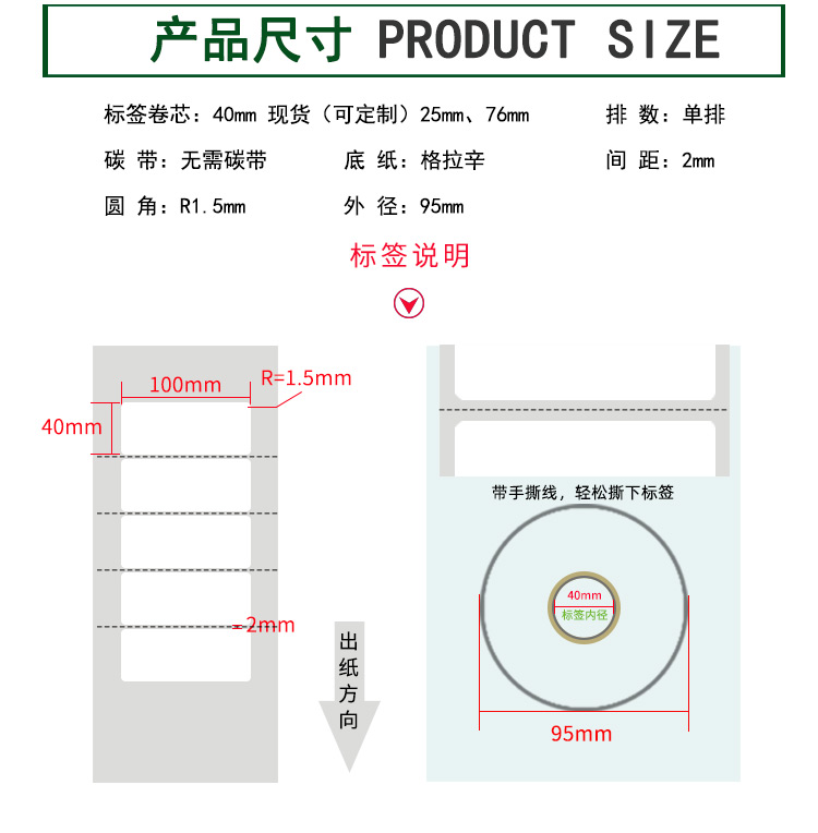 【標簽間距】2mm、圓角R=1MM、卷芯寬度:40mm