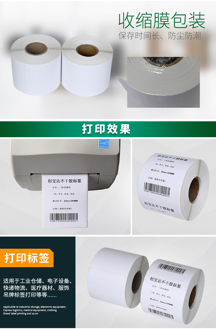 適合不同氣候地區(qū)使用,適用于亞馬遜FBA、郵政國際物流標簽、郵政包裹、EBAY、速賣通、遞四方、EUB標簽紙、電商標簽,五金塑膠等