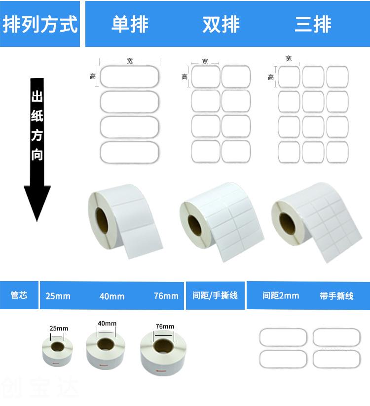 適合不同氣候地區使用,適用電子電器、五金塑膠、服裝、醫藥、日化、食品、商超、倉儲物流、資產管理、條碼標識、外箱貼紙等長期保存的產品標簽及外箱標簽同時也可以用于長時間保存(配合碳帶)的亞馬遜、郵政國際、物流標簽、郵政包裹、EBAY、速賣通、遞四方、出口EUB標簽、出口電商等標簽