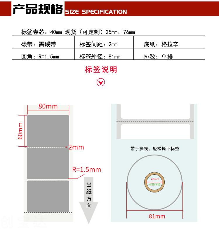 【規格】80mm*60mm*500張 36卷/箱